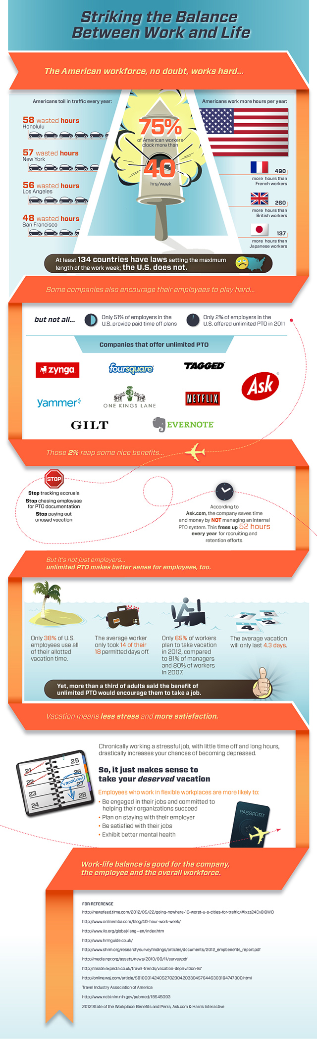 In a business that uses more brains than brawn, to have vacation based off of a traditional concept of work days just never made sense. It was a leap of faith when we decided to rip off the band-aid and we’re glad we did. Our employees, on average, take about 2.5 weeks per year, not including the time off they have between Christmas and New Years when we shut down. Everyone in the company realizes that vacation is an important concept and when you need to take it, please do. But they also know that when one person isn’t there, someone else is picking up their slack. Its just the way it has to be. So we say take the time you need to come back energized and just pay it forward by covering for someone else that takes vacation next time around. It really can bring a team together. Found this infographic that also has some good points.